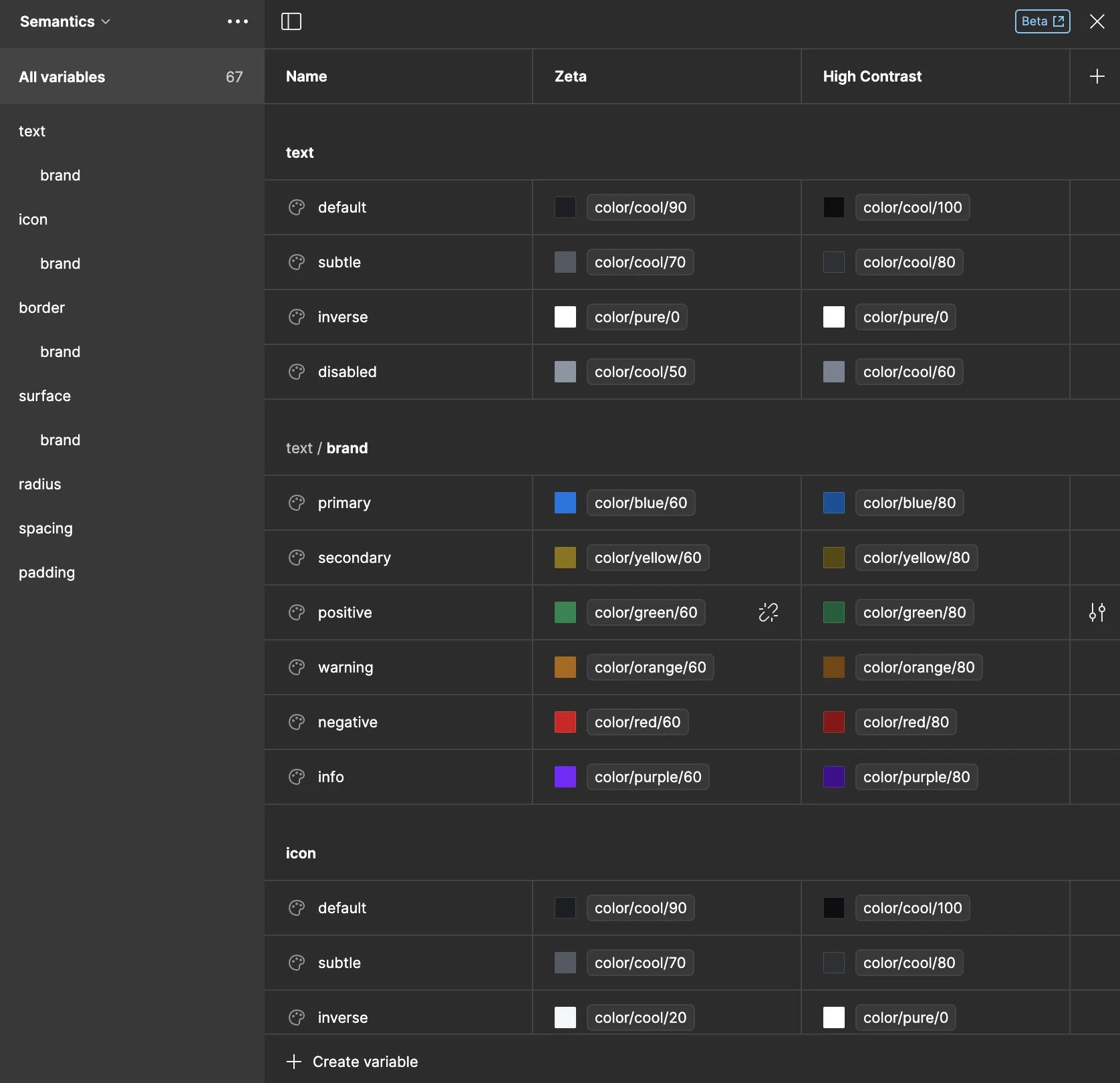 To make the transition much easier for our designers, we’ve gone through & connected our previous color styles with our variables. This allowed them to detach & keep the variables but also gain the benefits of variables without much less upfront effort. This has also made it easier for us to go through our component library & convert each component set to solely variables.